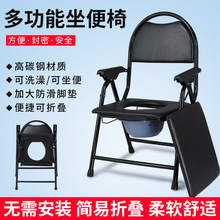 厂家批发 加粗管圆靠背双面靠背坐便椅 加固可折叠 移动马桶