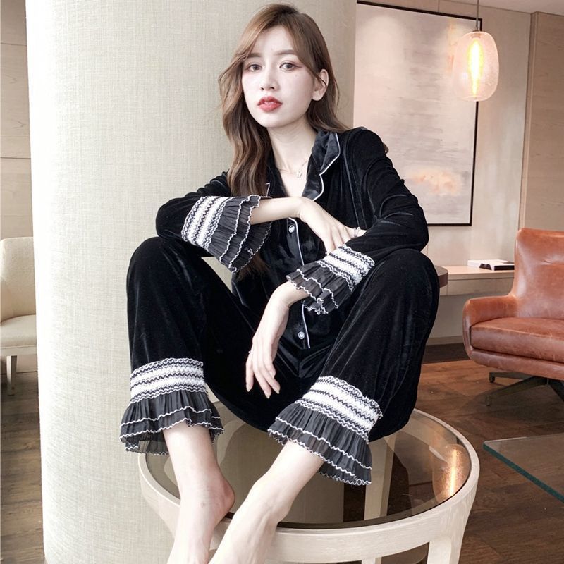 金丝绒睡衣女秋冬款长袖两件套女士春秋休闲家居服可外穿网红ins