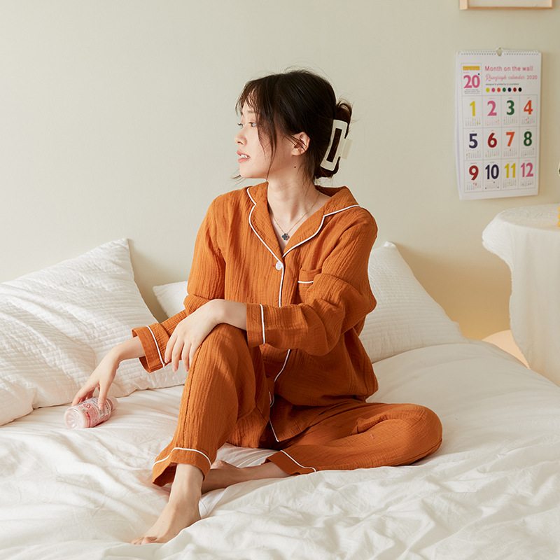 男女情侣款60S双层纱绉布家居服 夏季透气面料糖果色全棉家居服