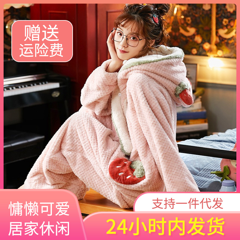 秋冬季女士法兰绒家居服睡衣套装睡袍珊瑚绒甜美女款睡衣女秋冬