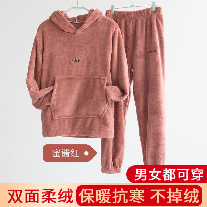 珊瑚绒睡衣仙女暖暖裤加厚加绒套装圆领秋冬法兰绒保暖家居服套装