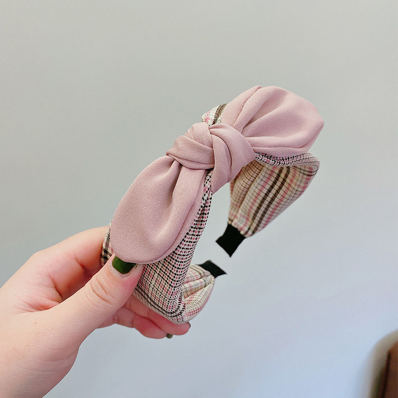 FG365夏日百搭格子兔耳朵宽边韩版打结头箍压发时尚发卡批发混批