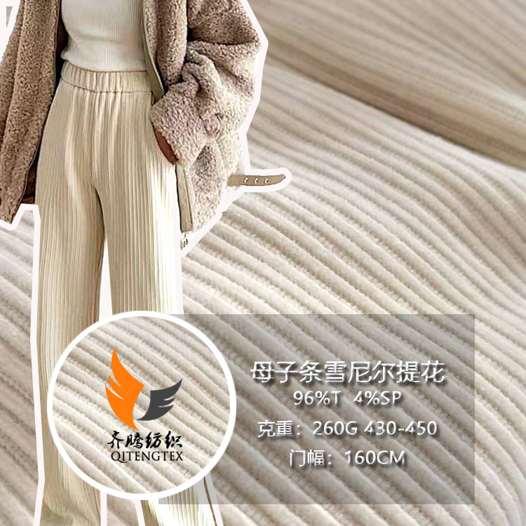 雪尼尔母子条提花 450克秋冬灯心绒外套阔腿裤厚款针织面料