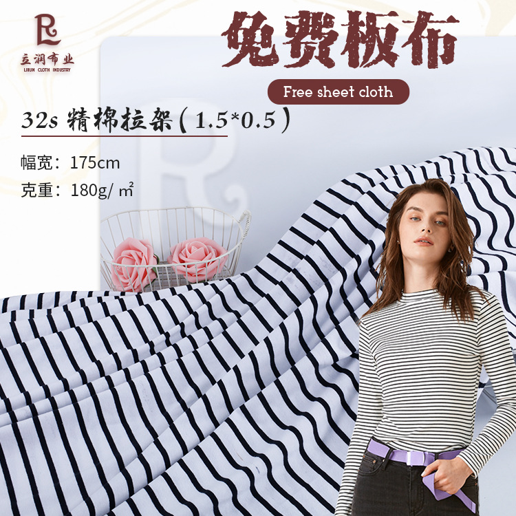 32s精梳棉拉架 全棉汗布 条纹单面针织布 180g弹力条纹t恤面料