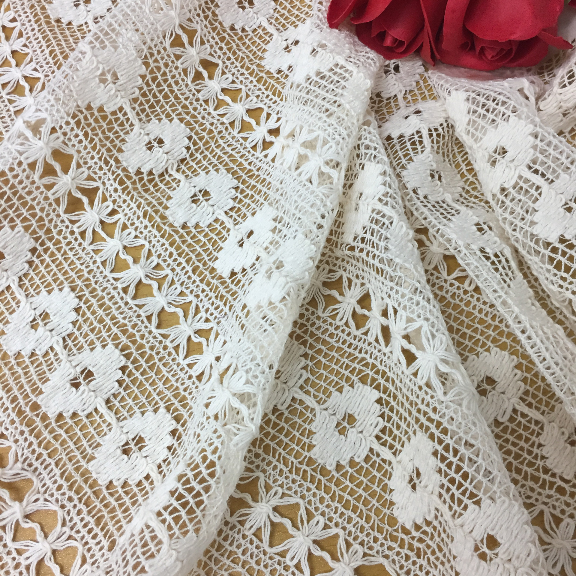 全棉米字排花蕾丝面料新 镂空勾花针织女装家居布料辅料 厂家直销