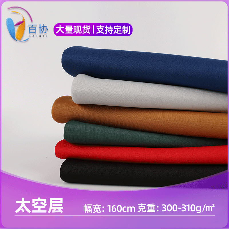36S涤氨夹丝空气层 双面平纹太空层针织布立体口罩棒球服外套面料