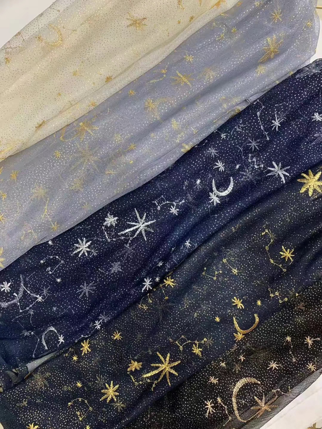 厂家直销新款绣花 星星花边月亮银点 蕾丝面料 花边面料 刺绣布料