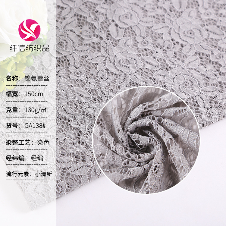 春夏锦氨弹力蕾丝面料定制 经编镂空礼服花边布料 吊带衫网布