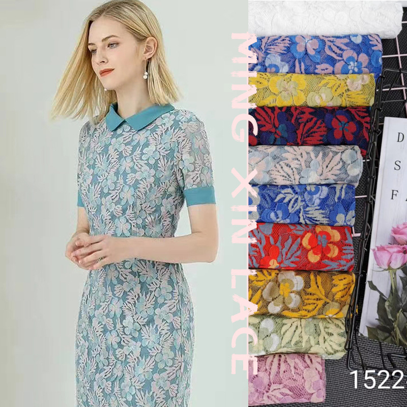 混纱三色加密蕾丝布料 混纱锦棉无弹亲肤蕾丝面料 时尚服装面料