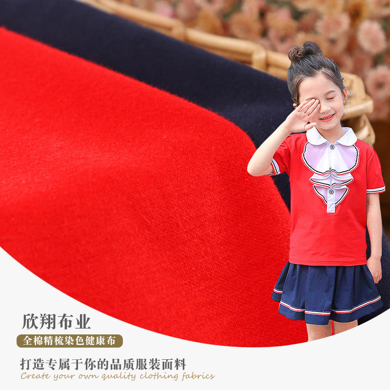 32S全棉健康布面料 280g精梳棉纯色双面布弹力针织校服运动服布料