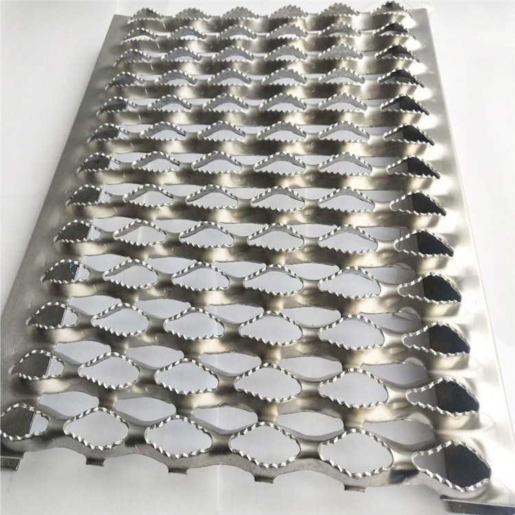 防滑板厂定制铝板鳄鱼嘴工厂脚踏板镀锌板圆孔起鼓机械防滑踏步板