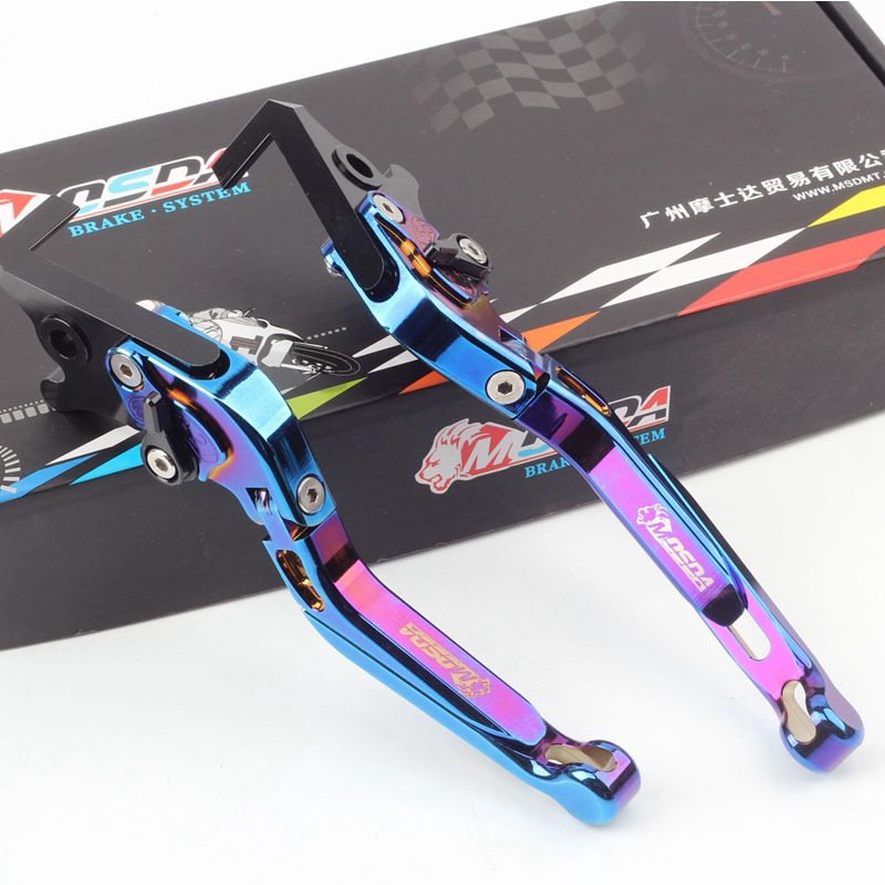新款全彩钛铝合金可调刹车拉杆牛角折叠伸缩碟刹适用摩托车电动车