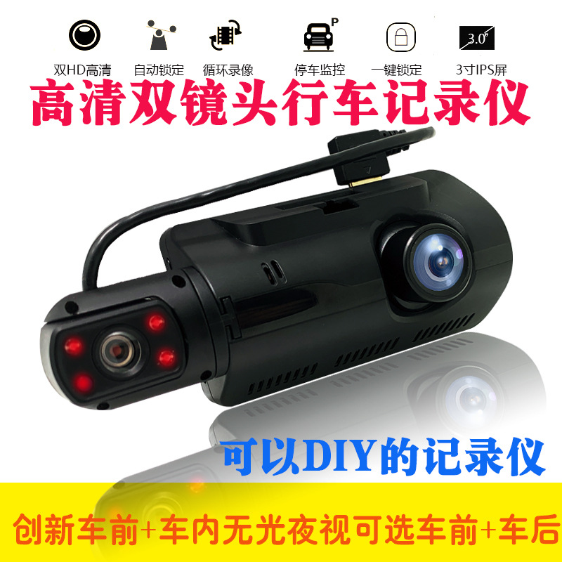 跨境新款行车记录仪车内无光夜视双镜头高清汽车360度24H停车监控