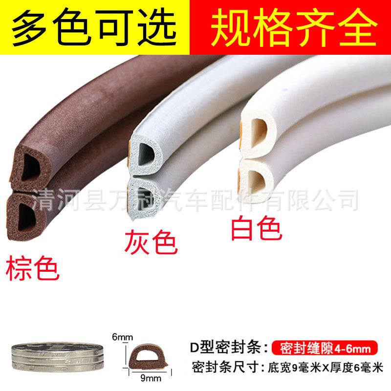 供应D型自粘型三元乙丙橡胶发泡密封条海绵彩色木门隔音防撞条