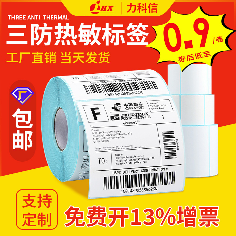 三防热敏纸不干胶标签贴纸 空白快递面单打印纸亚马逊E邮宝标签纸