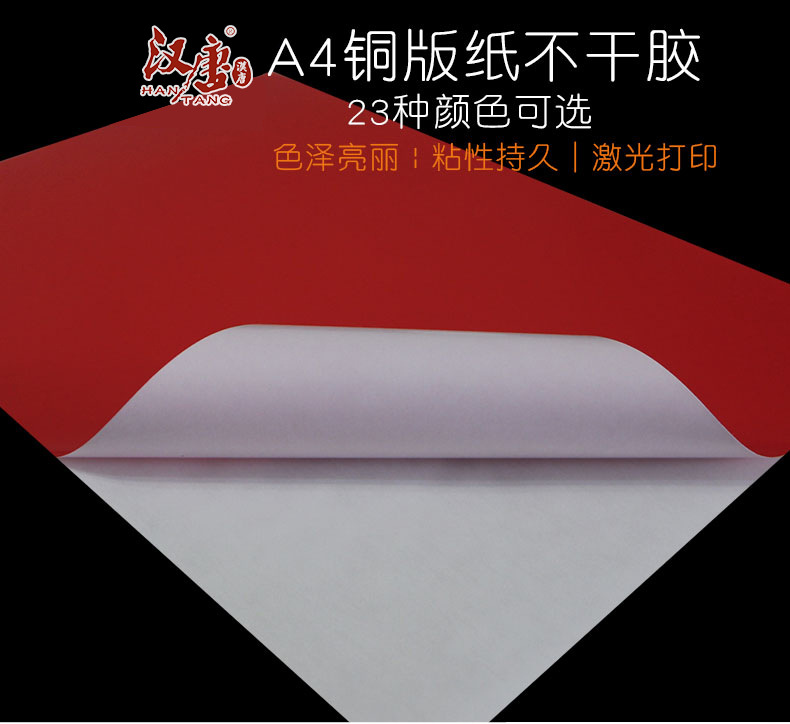 汉唐A4彩色整张铜版纸标签贴纸背胶光面自粘性不干胶标签打印纸a4