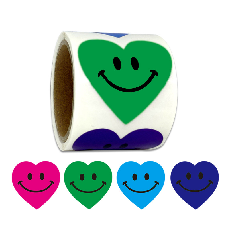 新款可爱儿童贴纸圆形爱心卷装多种颜色标签手工节日装饰封口贴