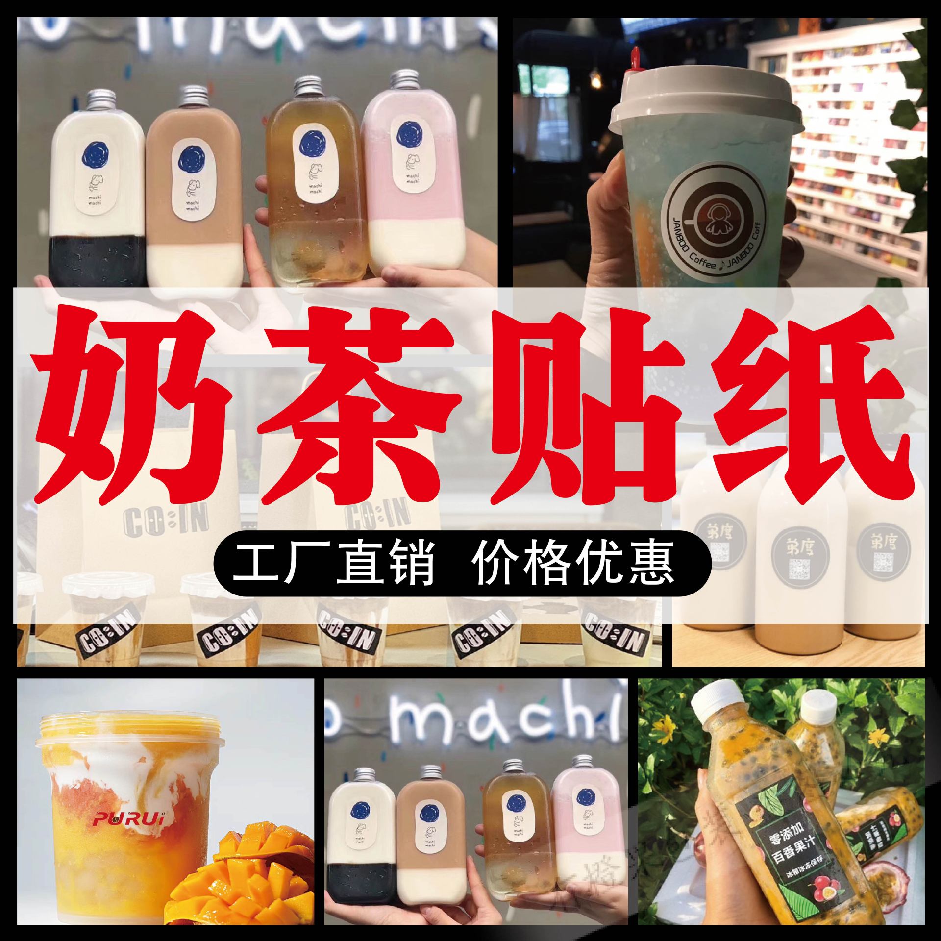 奶茶杯贴不干胶饮料饮品标签透明防水创意贴纸二维码logo