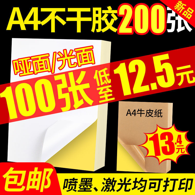 A4不干胶打印纸亚面铜版纸 210*29哑面背胶标签贴纸 打印标签纸