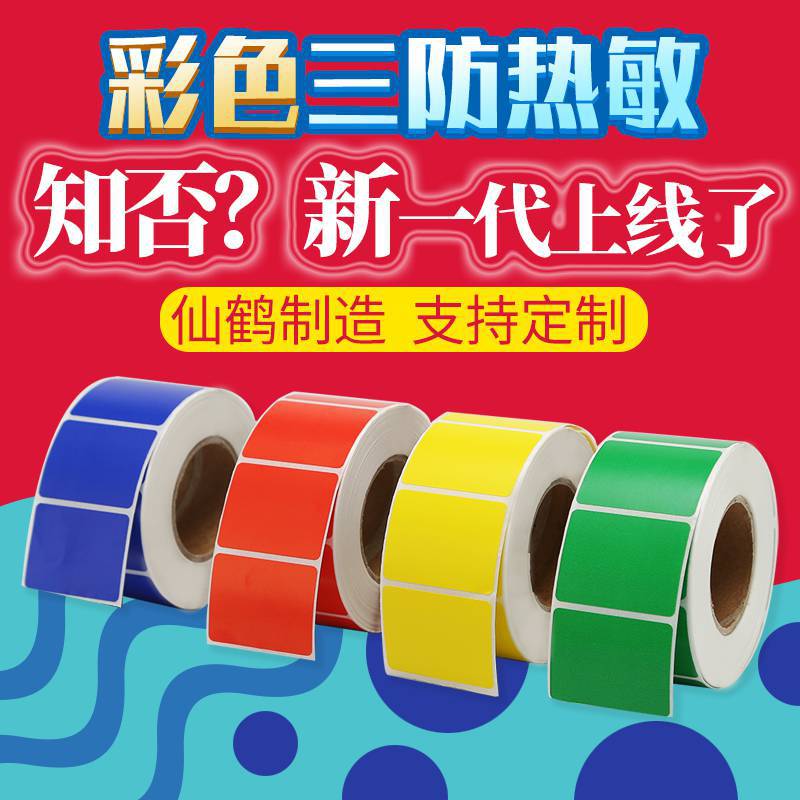 彩色三防不干胶热敏打印纸标签纸条码铜版纸黄红蓝色商品价格贴纸