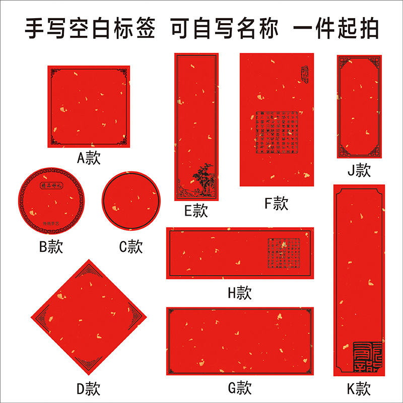 茶叶不干胶贴纸空白可手写二维码logo洒金红封口贴私藏