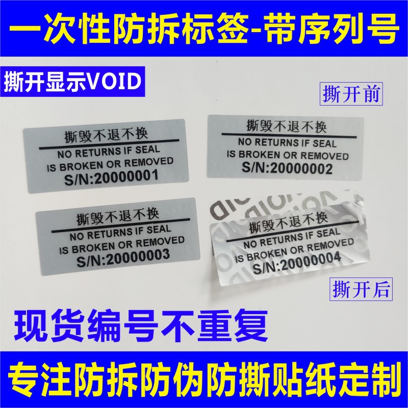 VOID防撕标签序列号条码防拆撕毁无效保修流水号编码一次性封口贴