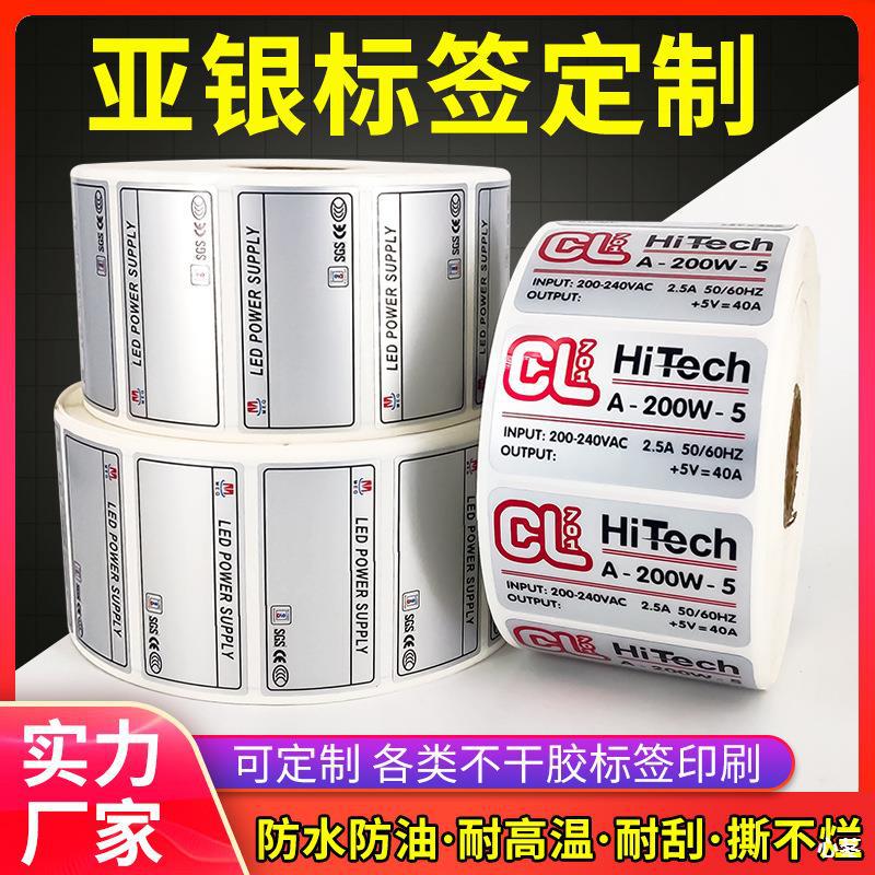 亚银不干胶标签贴纸 哑银耐高温防水防撕亮银pet电器电子商标印刷