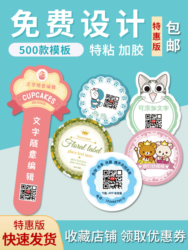 不干胶贴纸二维码标贴透明LOGO标签广告水果外卖烫金PVC 水牛