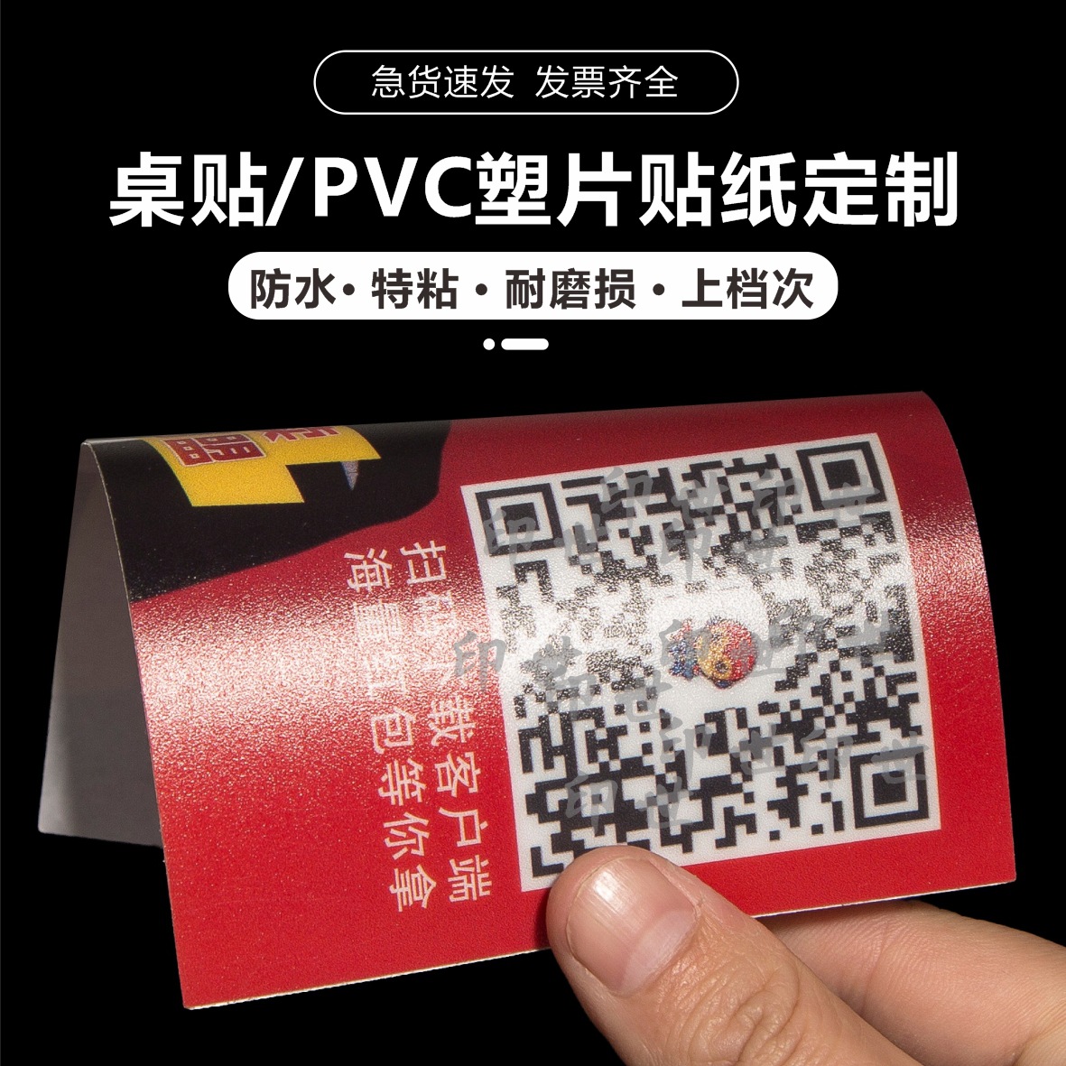 磨砂pvc不干胶桌贴纸二维码扫码点餐防水塑片警示面板标签