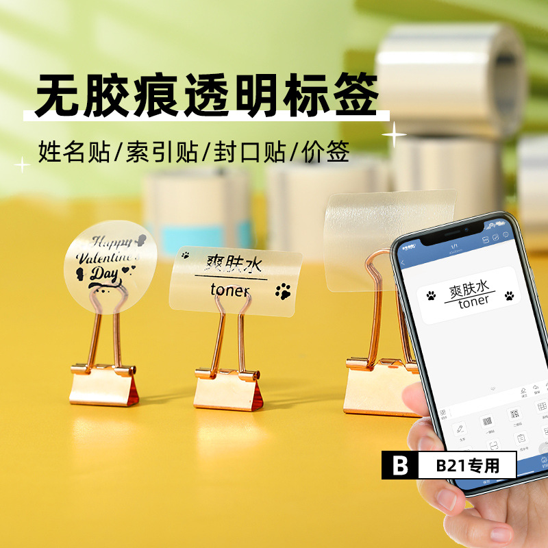 B21标签打印纸透明姓名贴化妆品logo不干胶贴纸防水二维码食品价