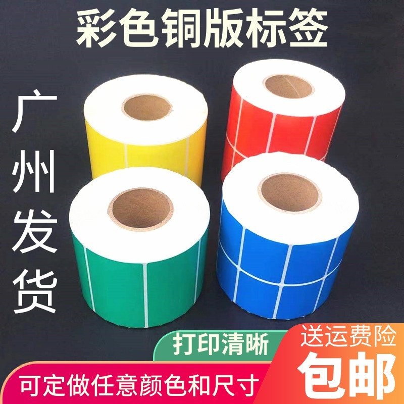 彩色不干胶标签纸铜版条码打印纸印刷染色红黄蓝绿不粘胶贴纸