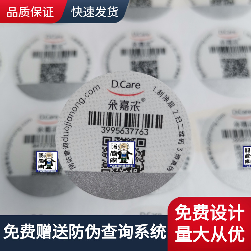 塑膜揭开留底防伪标签可变数据防串货二维码查询真伪不干胶印刷