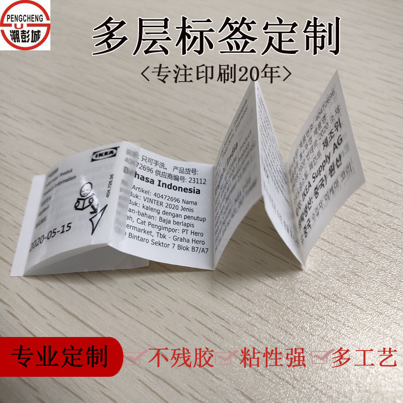 多层标签折页标签 PP合成纸不干胶标签卷筒多层双面印刷标签贴纸