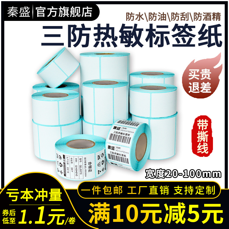 秦盛三防热敏标签纸60*40*30 20 50 70 80 100*100*150E邮宝不干