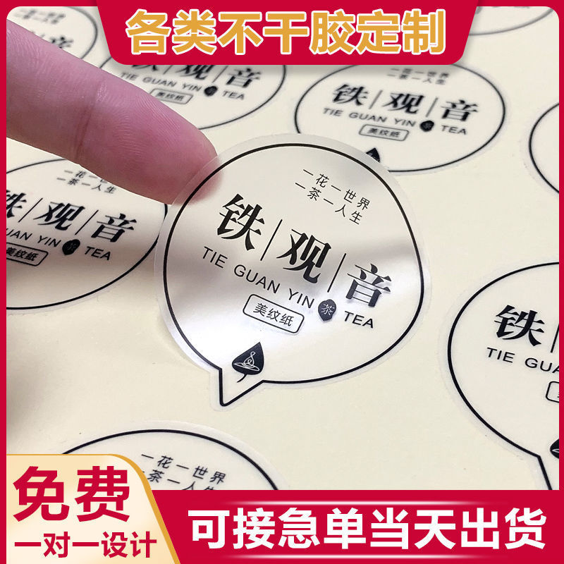 防水透明PVC不干胶贴纸订购烫金logo标贴封口贴奶茶标二维码订购