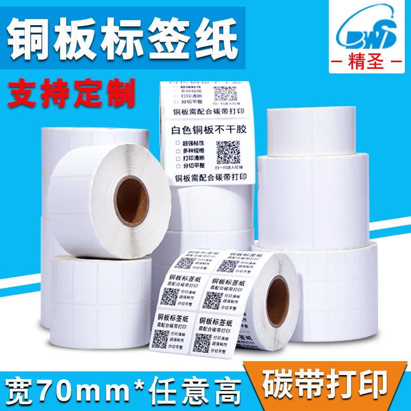 铜版不干胶宽70mm卷筒打印条码纸卷筒铜板标签纸 外箱标贴