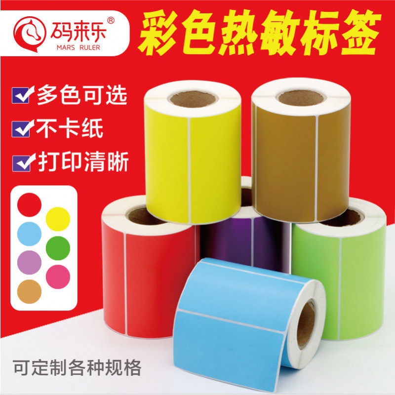 彩色热敏纸不干胶标签纸条码打印贴纸三防热敏打印纸红黄蓝绿紫色