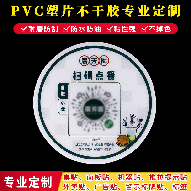 塑片pvc不干胶定制扫码点餐可变二维码桌贴外卖推拉餐厅点菜牌