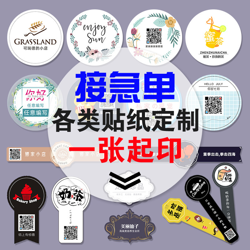 贴纸不干胶logo二维码外卖封口贴易碎水晶UV转印烘焙标签
