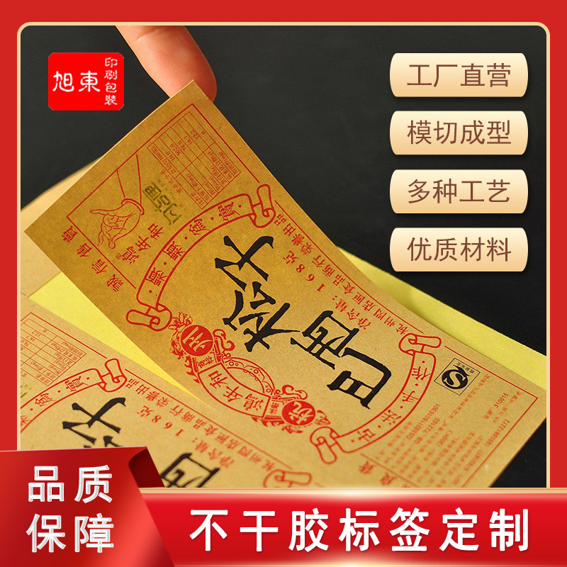 牛皮纸不干胶标签定制 高档茶叶贴纸封口贴透明标签 卷筒标签
