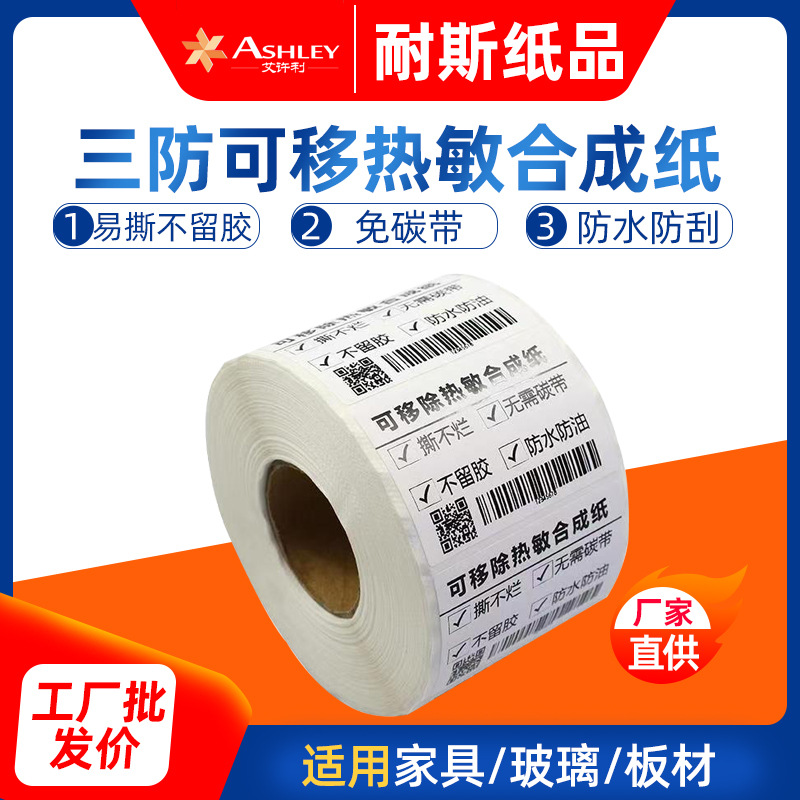 可移合成热敏纸 五防撕不烂标签不干胶易撕不留胶条码打印纸6040