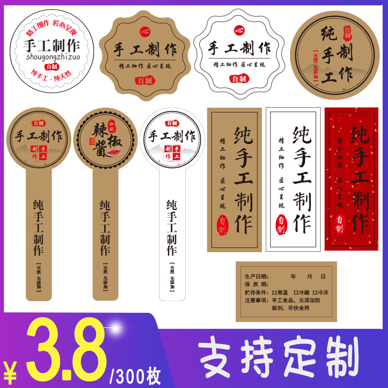纯手工制作贴纸复古牛皮纸不干胶标签外卖封口贴封条logo