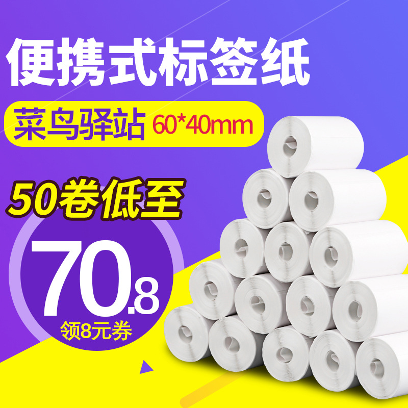 菜鸟驿站入库标签打印纸60x40x300张无管芯三防热敏不干胶标签纸