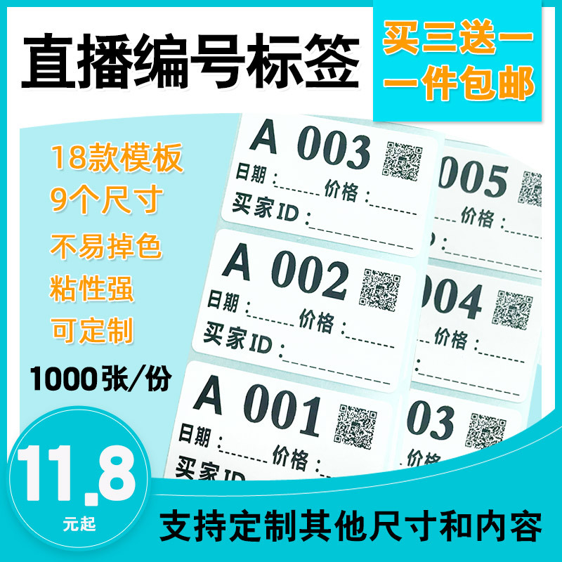 直播编号贴纸直播编码主播备注价格二维码标签可手写产品数字条码