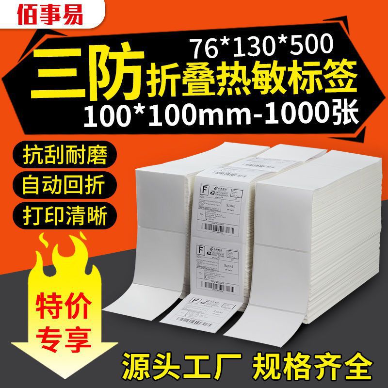 热敏纸三防100*150不干胶快递打印纸折叠76*130空白标签E邮宝贴纸