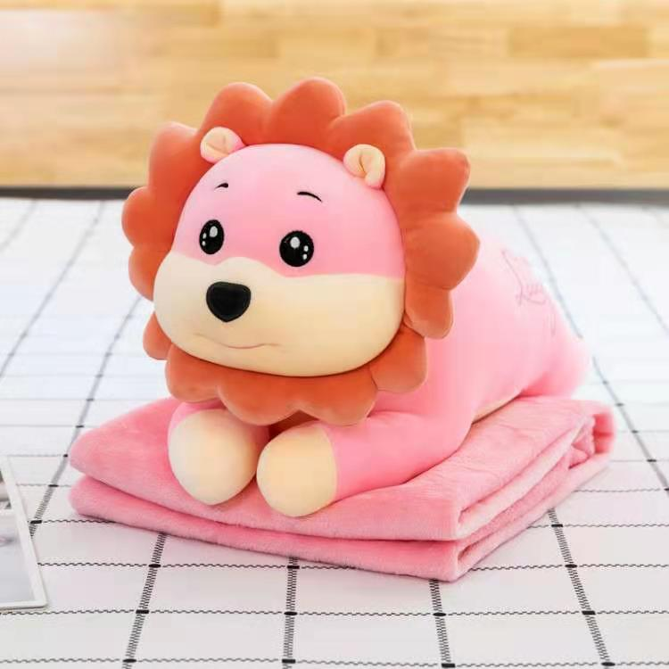新款狮子毛绒玩具水果空调被抱枕办公室午睡车载旅行毛毯定制
