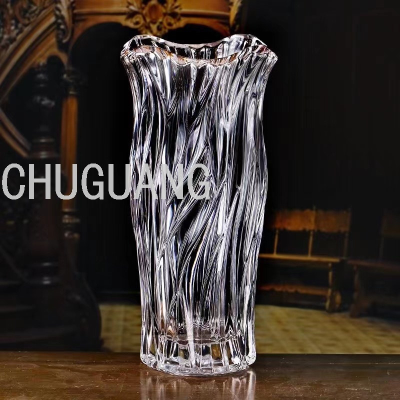 楚光玻璃花瓶客厅餐桌装饰简约美式田园风轻奢水晶花瓶四瓣鼓形
