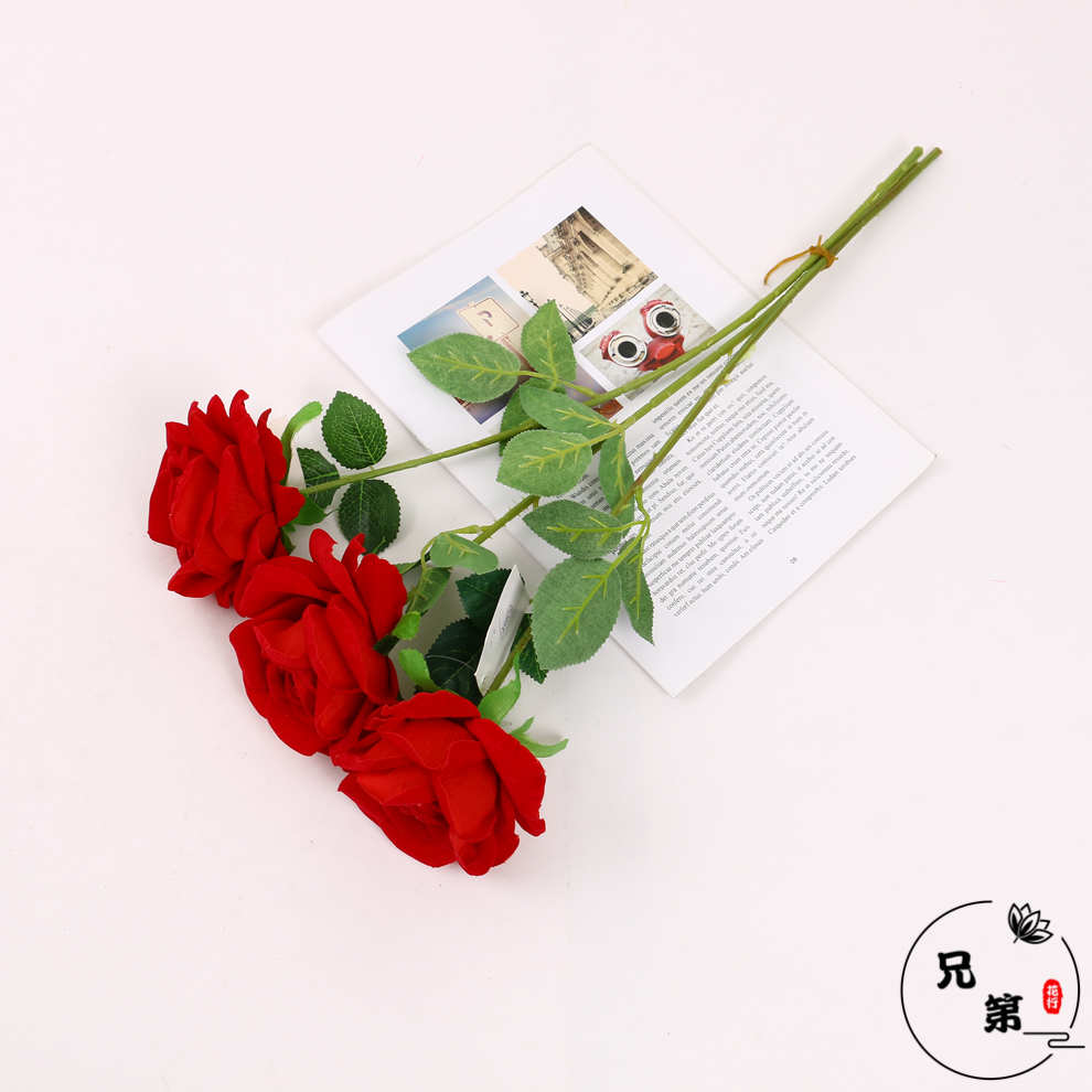 2021新款欧式绒布材质仿真玫瑰花 居家装饰假花 婚庆布置卷边玫瑰