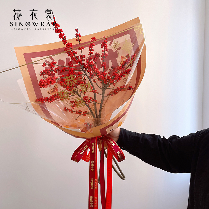 花衣裳 新年福字烫金玻璃纸防水包装纸花束内衬纸冬青包装纸