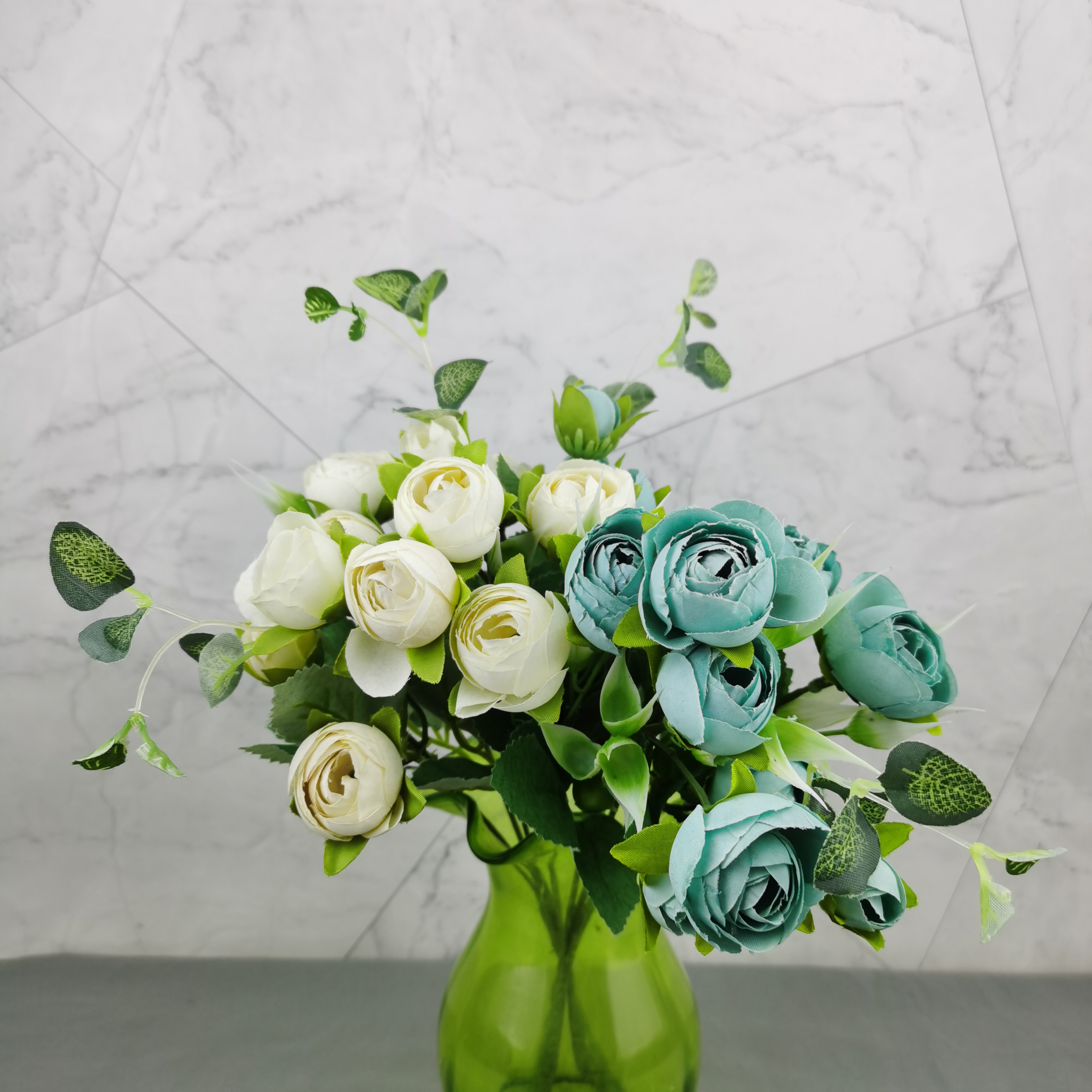 厂家5头雪花茶玫高档仿真花批发 家居工程室外装饰小把束假花